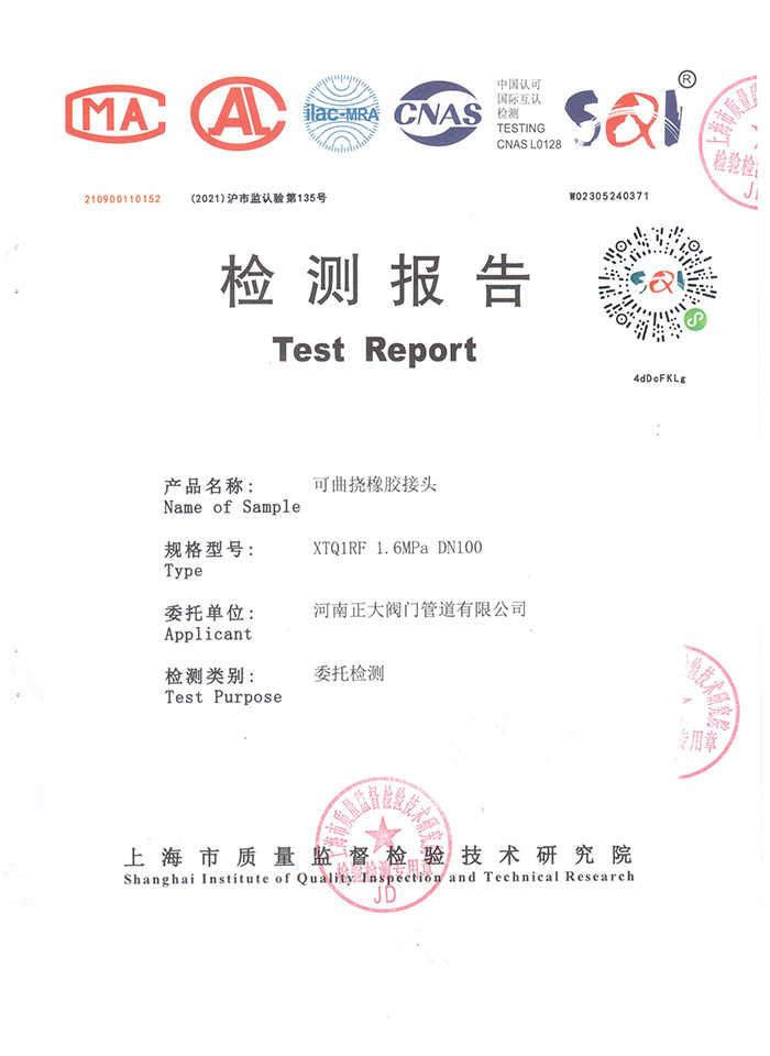 • 橡膠軟接頭檢測報告 橡膠軟接頭檢測報告