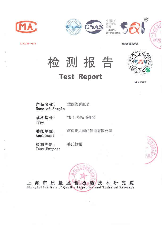 • 波紋膨脹節檢測報告 波紋膨脹節檢測報告