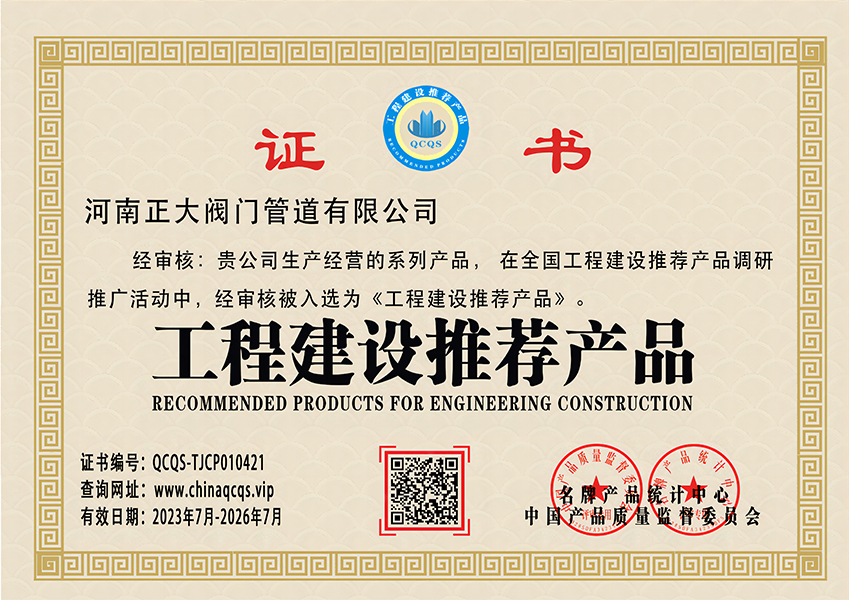• 工程建設推薦產品證書 工程建設推薦產品證書